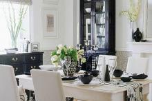 经典简约的欧式家具及其简单。桌面上配上基本的按设备,让这个装饰范例一点也不遥远,极其平民化的设计搭配。直接带有坐垫的椅子方便舒适之外,还在纯黑的餐桌中间夹杂了白色元素,使黑白相间的搭配,白里中有黑,黑里中有白,简约时尚的同时绝不审美疲劳。