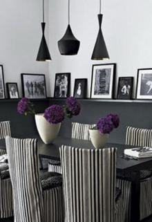 黑白灰三元素再搭上深紫色的花朵组成的用餐空间,前卫时尚的同时也深深地透漏出庄严稳重的气息。深紫色的花朵把整个空间点亮,流露出活泼的一面的同时不失稳重的大基调。
