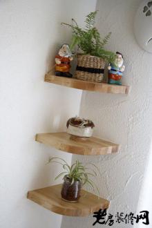装饰Tips:用木板打造的扇形收纳架,不仅独特美观,还非常实用。一红一蓝的小矮人,俏皮可爱,让空间更富有情调。粗糙的墙壁搭配绿色植物,将自然之风演绎的淋漓尽致。