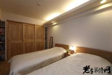 装饰Tips:嵌入式的分层收纳柜,放上家中的读物,一目了然,方便主人拿取。木质衣柜,不仅有防尘作用,还让衣物的摆放更加整齐。铺上了白色床单的木质床,干净大方。