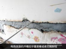点评:同样电路的开槽是横向,且主要分布在墙面的中间部分,这样很可能会导致今后的墙面开裂比较严重。