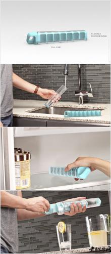 制冰模具,这个设计解决了一个问题,取冰难!只要把格子手柄拉出来,轻轻敲击即可。