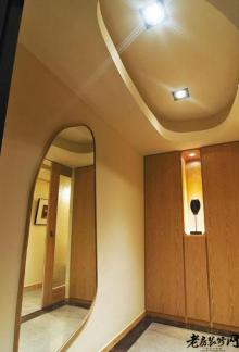 玄关处,镜子、天花已是椭圆造型,相互映衬,引人遐想。
